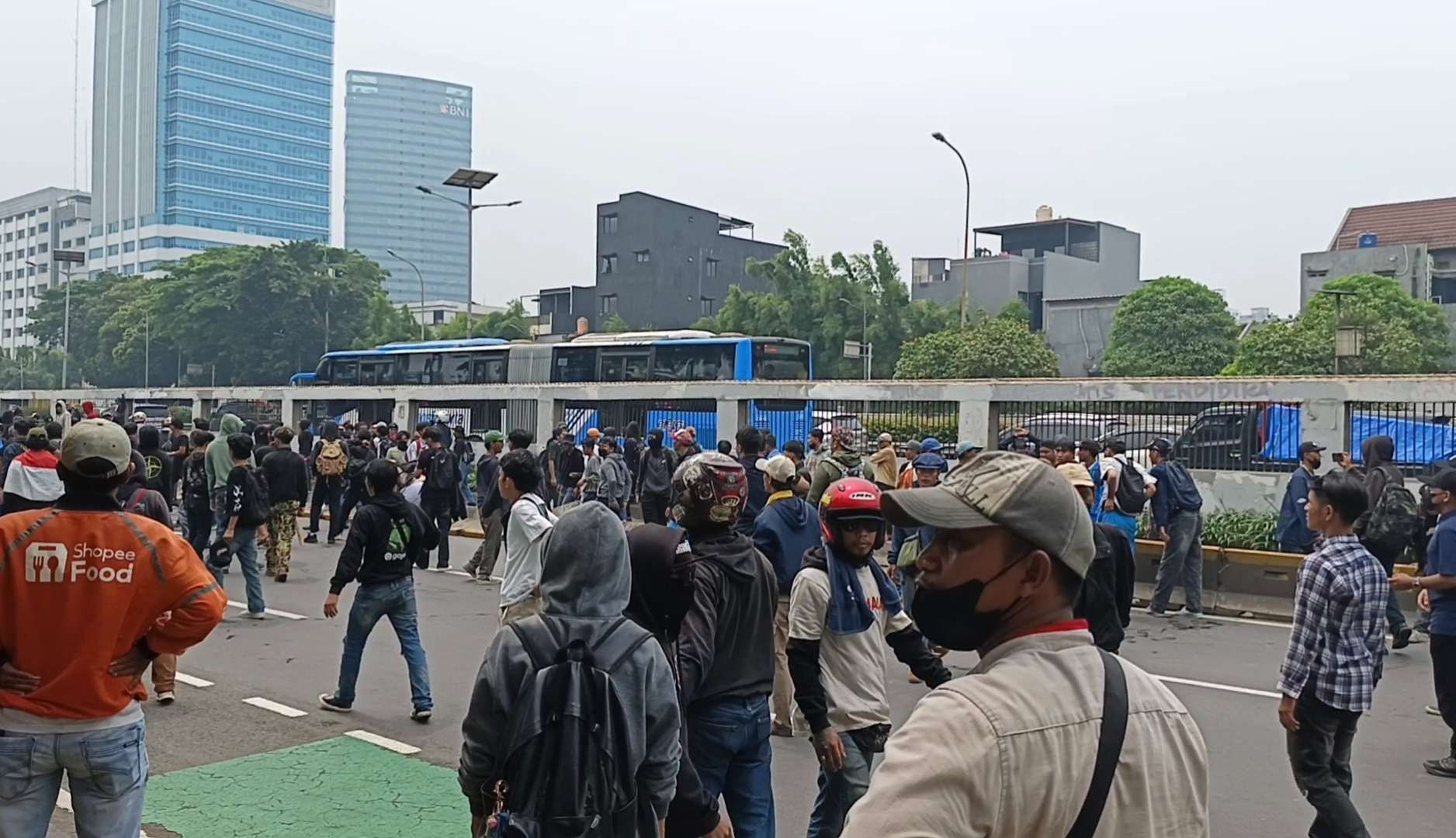 Selain pengendalian kerumunan, polisi menerapkan rekayasa lalu lintas di Jalan Gatot Subroto. Kendaraan menuju Slipi dialihkan sementara ke arah Jalan Gerbang Pemuda dan Bendungan Hilir.