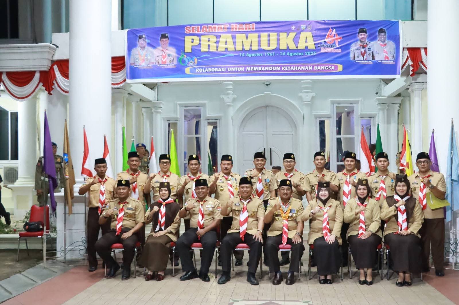 Promedianusantara, Jambi – Dalam rangka memperingati Hari Pramuka ke-64, Bupati Tanjung Jabung Barat, Drs. H. Anwar Sadat, M.Ag., selaku Ketua Majelis Pembimbing Cabang (Kamabincab), memimpin Upacara Renungan dan Ulang Janji Pramuka di Halaman Kantor Bupati, Rabu malam (13/8/25).