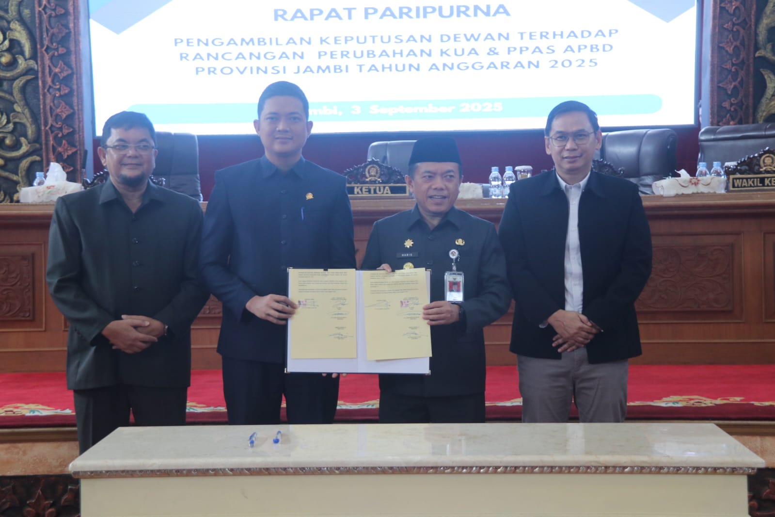 Penandatanganan kesepakatan ini menjadi landasan penting dalam penyusunan Rancangan Perubahan APBD Tahun Anggaran 2025, sekaligus sebagai bentuk sinergi antara Pemerintah Provinsi Jambi dan DPRD dalam upaya memperkuat program prioritas pembangunan daerah serta meningkatkan pelayanan publik.