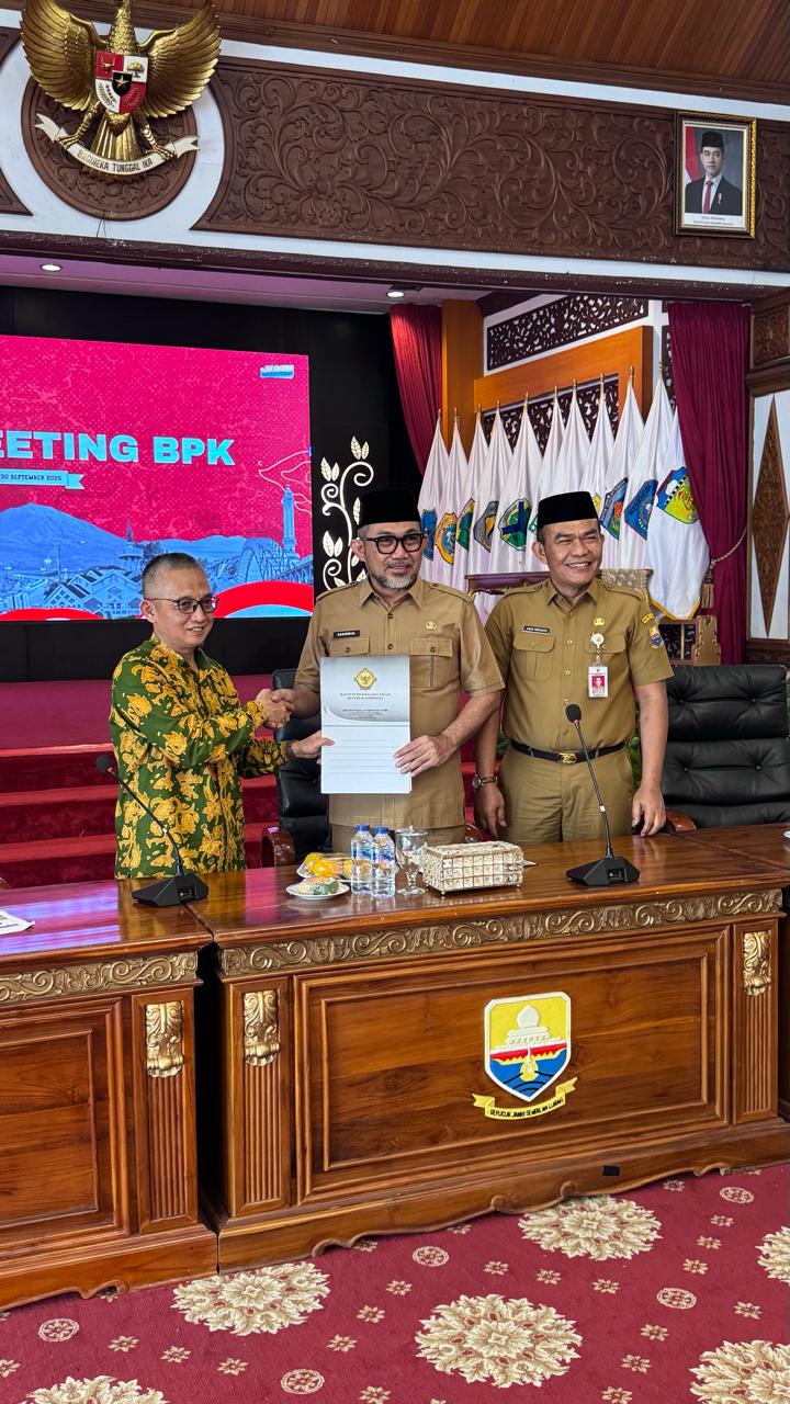 Promedianusantara.com, Jambi – Sekretaris Daerah (Sekda) Provinsi Jambi Dr. H. Sudirman, SH, MH memimpin Exit Meeting dan Entry Meeting Badan Pemeriksa Keuangan Republik Indonesia (BPK RI) pada Pemerintah Provinsi Jambi, bertempat di Auditorium Rumah Dinas Gubernur Jambi, Selasa (30/09/2025) pagi.