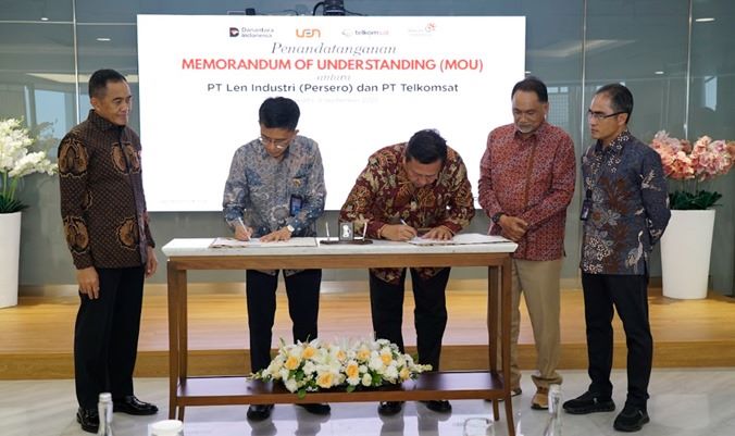 Promedianusantara.com – PT Telkom Satelit Indonesia (Telkomsat) menandatangani Nota Kesepahaman (MoU) dengan PT Len Industri (Persero) dalam upaya memperkuat sistem pertahanan nasional melalui pengembangan infrastruktur komunikasi dan digital berbasis satelit.